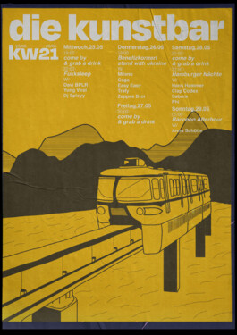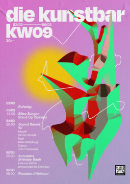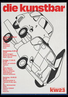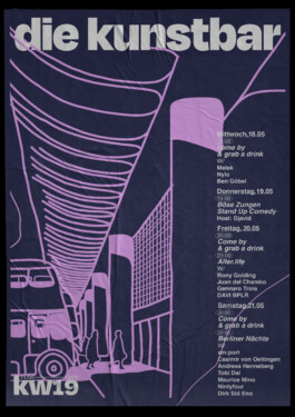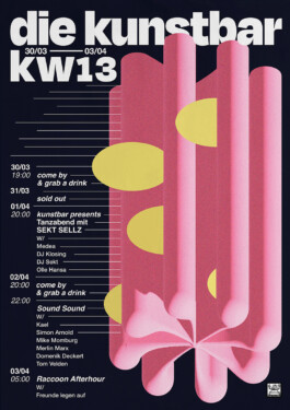 The Kunstbar am Kölner Dom has been one of the few subcultural oases in the city center for almost 10 years. From 2021-22, I designed over 60 weekly programs and other graphics for events at the Kunstbar. The great freedom I was given in the design allowed me to try out different graphic styles over the months.