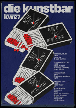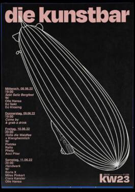 The Kunstbar at Kölner Dom has been one of the few subcultural oases in the city center for almost 10 years. From 2021-22, I designed over 60 weekly programs and other graphics for events at the Kunstbar. The great freedom I was given in the design allowed me to try out different graphic styles over the months.