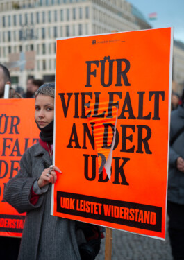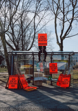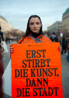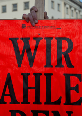 Aufgrund der massiven Kürzungen im Bildungsbereich, die vom Berliner Senat beschlossen wurden, steht für tausende Studierende das Studierendenleben, so wie Sie es kenne, auf der Kippe. Um ein Zeichen zu setzen, habe ich eine Protestaktion in Form einer 20 Meter breiten Plakatwand, direkt am Medienhaus der UDK Berlin organisiert.