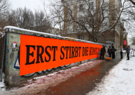 Due to the massive cuts in education decided by the Berlin Senate, student life as you know it is on the brink for thousands of students. In order to set an example, I have organized a protest action in the form of a 20-metre-wide billboard directly at the UDK Berlin media building.