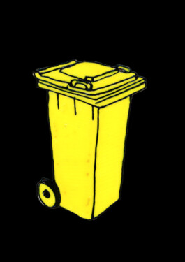 Sie sind bedruckt/bestickt mit Illustrationen, die die einzelnen Bereiche der Wohngemeinschaft repräsentieren.